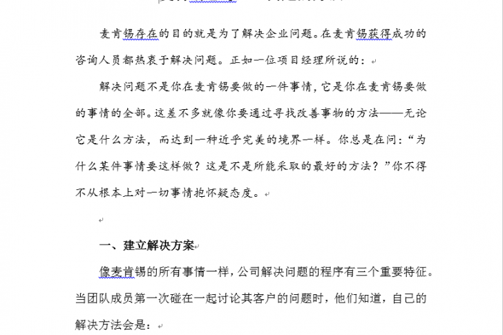 麦肯锡思考企业问题的方法 麦肯锡存在的目的就是为了解决企业问题。在麦肯锡获得成功的咨询人员都热衷于解决问题。正…