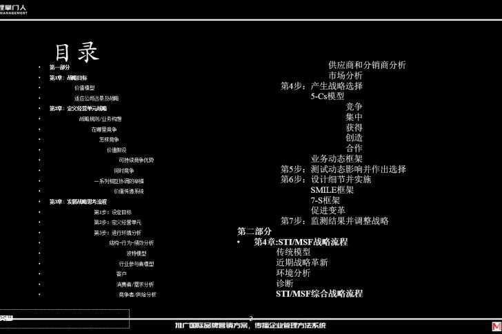 第一部分 第1章: 战略目标 价值模型 适应公司远景及战略 第2章: 定义经营单元战略 战略规则/业务构想 在…