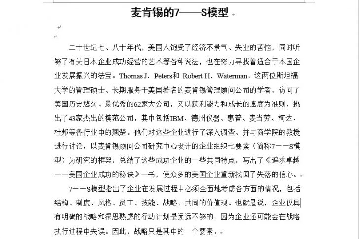 麦肯锡的7——S模型 二十世纪七、八十年代,美国人饱受了经济不景气、失业的苦恼,同时听够了有关日本企业成功经营…